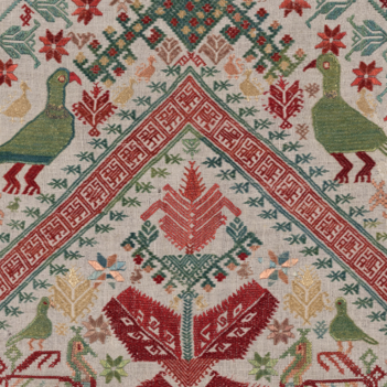 Présentant une gamme de textiles du monde méditerranéen, l'exposition explore les pratiques de broderie qui les relient. Créés pour la plupart par des femmes, ces textiles décoratifs ont fourni un moyen d'expression pour les femmes qui, génération après génération, ont transmis leurs compétences en matière d'aiguilles, créant des pièces qui reflétaient les goûts personnels, le statut social et l'appartenance à la communauté. Les caractéristiques communes comprenaient des navires, des vases, des êtres fantastiques, des humains, des oiseaux et même des mots, tandis que d'autres motifs dénotaient des différences régionales.