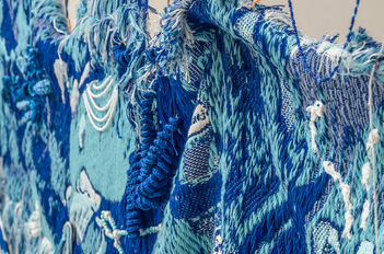 Diplômée des arts décoratifs et des Beaux-arts de Paris, Mona Cara développe une pratique autour de la tapisserie. Pour son exposition personnelle, l’artiste présente notamment des pièces nées d’une résidence à Rio, durant laquelle elle a mené des recherches autour de la déesse Lemanja. Issue du panthéon africain Yoruba, la divinité est devenue, de par le syncrétisme propre au Brésil, la reine des mondes aquatiques et peut parfois même être assimilée à la Sainte Vierge. Cette figure tutélaire prend vie dans une narration à l’esthétique pop où cohabitent une surabondance de références issues de la culture collective, de la bande dessinée et d’iconographies enfantines. Une nouvelle épopée contemporaine est révélée aux visiteurs.