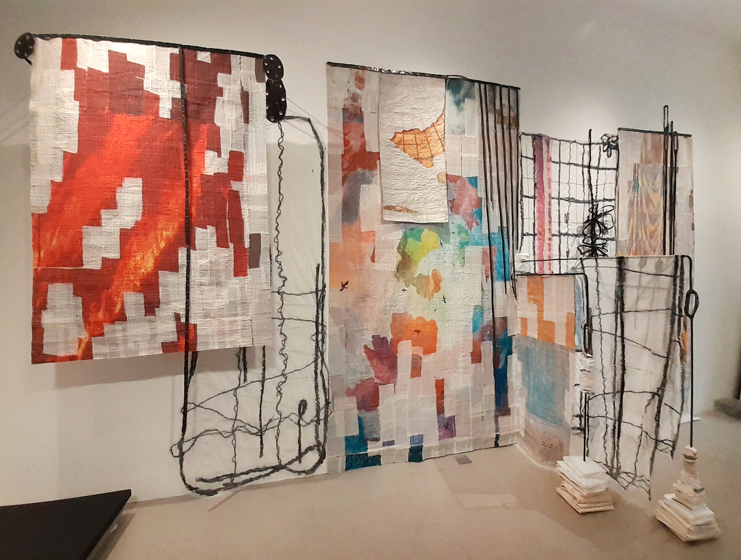 Pour cette première exposition personnelle avant le départ aux Etats-Unis de l'artiste pour une résidence de la Fondation Albers en 2026, Pauline-Rose Dumas - qui travaille le textile, le dessin et le métal forgé dans un constant va-et-vient - remet en question la places des outils (aiguilles, ciseaux, mètres ruban), de l’image et des supports dans des sculptures murales et des installations alliant métal et tissus thermo-imprimés, assemblés en patchwork.