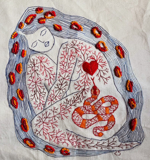 Carolina Sepulvada, artiste brodeuse et poétesse chilienne vivant à Lille, voit la broderie comme un acte de réparation et un retour aux origines.