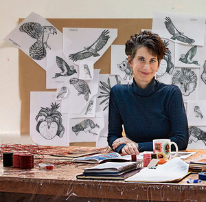 L'art de Kruger se concentre principalement sur les oiseaux et les langues en danger critique d'extinction.