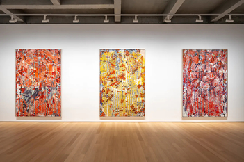 L’exposition à caractère rétrospectif présente une trentaine d’œuvres, peinture à la cire ou travaux photographiques de format divers, carré, rectangulaire ou ovale, toutes créées entre 1969 et 2024. Cet ensemble se fait une fois de plus le témoin d’une ardeur insatiable de l’artiste pour le travail de la surface. D’abord, Rouan travaille des lambeaux de toile teints d’une palette détonante, du jaune poussin, au rouge brique, en passant par le bleu cobalt ou encore le noir charbonneux. Soigneusement tressés sur le tableau, il s’amuse ensuite, non sans audace, à lacérer, entrelacer, reconsidérer, achever ou bien parfois désagréger la surface pour tout recommencer à nouveau. Derrière une apparente simplicité des motifs ou chromatique se cachent quelques-uns des questionnements métaphysiques et obsessionnels de l’artiste comme celui de la peinture en tant qu’œuvre d’art, ou encore de l’origine du monde, l’image du corps ou encore l’existence humaine.
