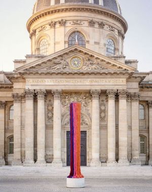 L'installation extérieure de Sheila Hicks sur le Parvis de l'Institut de France, lors de Paris + by Art Basel, incarne le concept de l'infini.