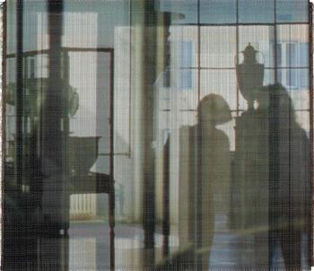 « Susanne Wellm a inventé une machine à jouer avec le flou, à donner l’illusion d’un mouvement, à introduire une part de mystère. Pour ce faire, elle a puisé dans une réserve de clichés photographiques de toutes provenances et dont les auteurs sont souvent anonymes ; cette réserve, qui lui a parfois permis de superposer des images différentes, offre un matériau à partir duquel elle a opéré de subtiles manipulations : une opération que l’on peut assimiler à celle d’un tissage qui fait s’entremêler de longues bandes de tirages avec des fils se répartissant très régulièrement et méthodiquement à la surface de l’œuvre, ou s’interrompant parfois au milieu des photographies. Ce tissage forme ainsi une trame et filtre la vision. Le geste artistique se concentre sur cet entremêlement, la main guidant le métier à tisser ; il se loge dans le travail de la matière même de l’œuvre qui sera offerte à notre regard. Le sujet de l’image est relégué au second plan comme si l’attitude de l’artiste voulait témoigner d’une forme d’humilité à son égard » - extrait du texte de Gabriel Bauret, commissaire de l'exposition.