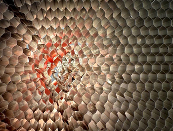 Dans Transponder II – When Stars Fall Silent, Vanessa Enriquez poursuit son exploration des notions de disparition, de résonance et de transformation à travers des matériaux liés à l’aérospatiale et au monde naturel. À partir de nida, une structure en nid d’abeille utilisée dans la fabrication de satellites (notamment par l’entreprise ThalesAlenia Space), et de cire d’abeille, elle crée des oeuvres sensibles qui captent des fréquences oubliées, des signaux éteints, des échos persistants.