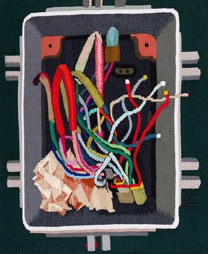 A partir de très intéressants dessins, Zhenya Machneva, réalise des œuvres tissées. Malheureusement la technique est très faible et la simplification des formes n'apporte rien au propos de l'artiste, tel que nous pouvons le connaître par les explications de Marie Gautier : La pratique de Zhenya Machneva se concentre essentiellement autour de la technique de la tapisserie traditionnelle, faite main, technique ancestrale qu’elle n’a de cesse de placer dans une perspective contemporaine et affranchie du statut d’art décoratif. Les sujets qu’elle développe relèvent d’une imagerie très actuelle : paysages urbains, friches désolées d’usines abandonnées, machines obsolètes, autant de références au réel qu’elle revisite et transpose dans des compositions tissées. Elle glane ces formes et sujets lors de promenades et les capture par le biais de la photographie. La plupart de ses motifs sont issus de pérégrinations dans d’anciennes usines soviétiques désaffectées, témoins d’un passé industriel triomphant, qu’elle mêle à des fragments de paysages urbains issus pour certains de ses voyages outre-Atlantique.